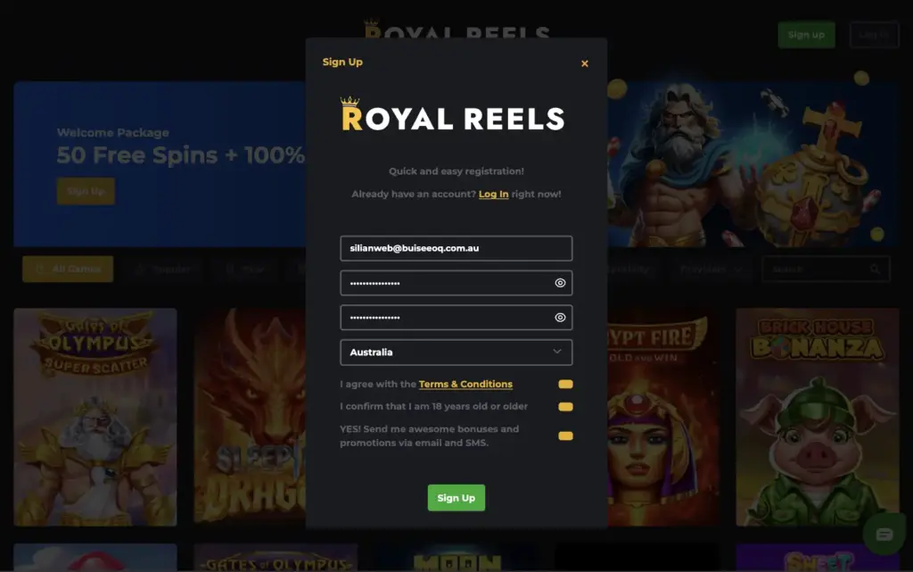 Sign Up Process at RoyalReels Online Casino