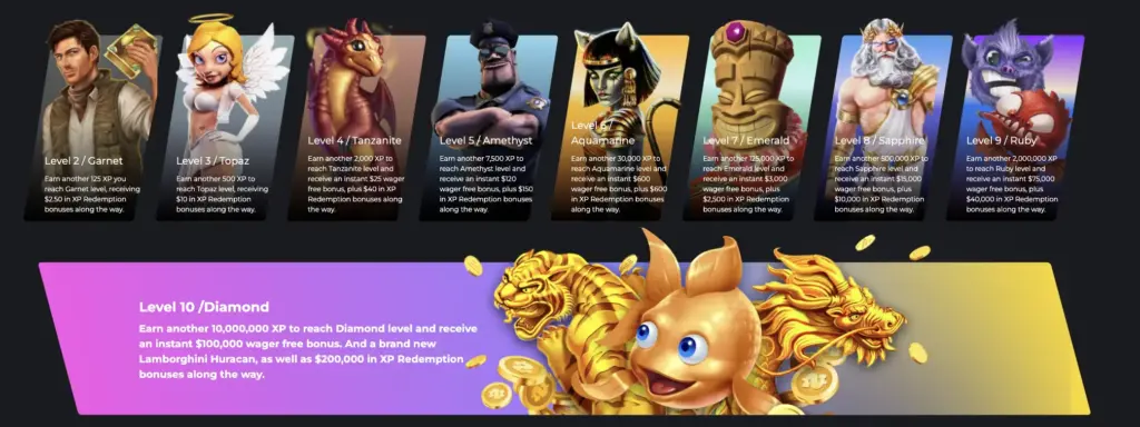 - Claim tier-specific benefits and convert accumulated XP to real funds through the rewards interface